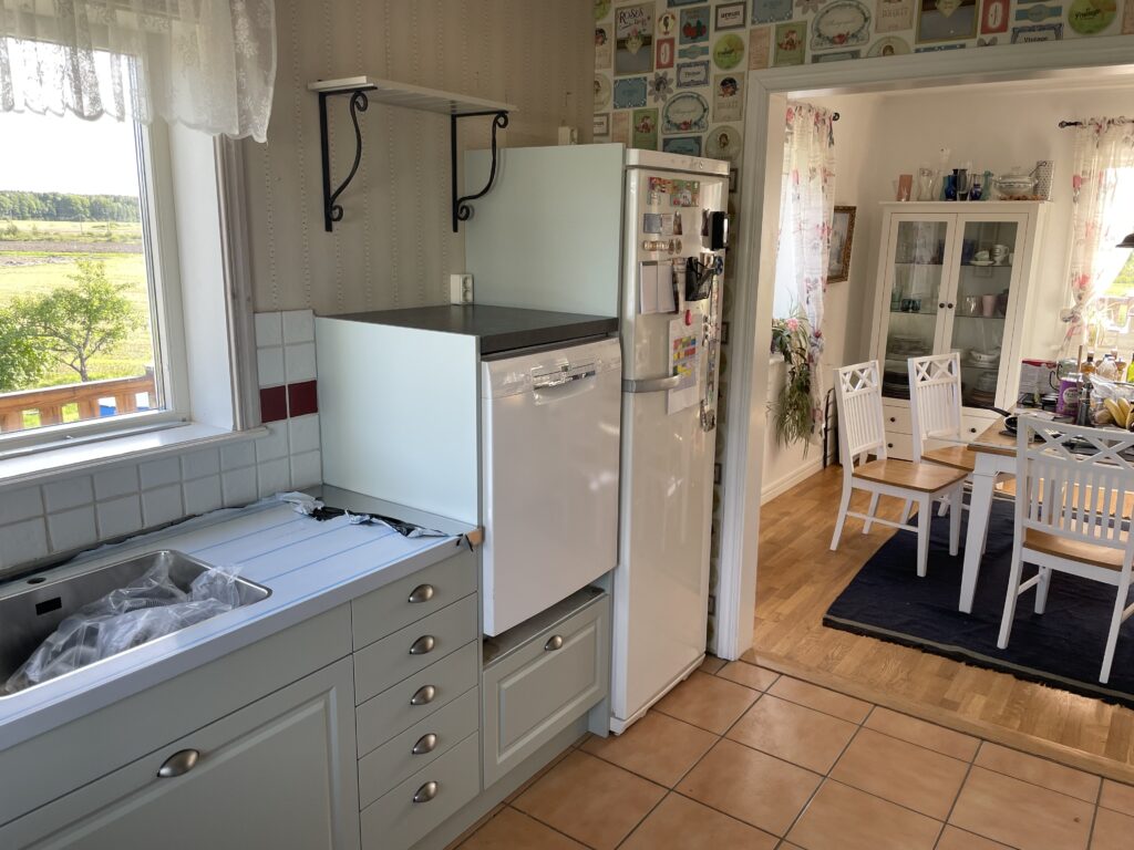 Genom att byta ut lådfronter, luckor och montera en måttanpassad diskbänkar och hyllor skapade vi ett klassiskt och inbjudande kök som väcker avund.