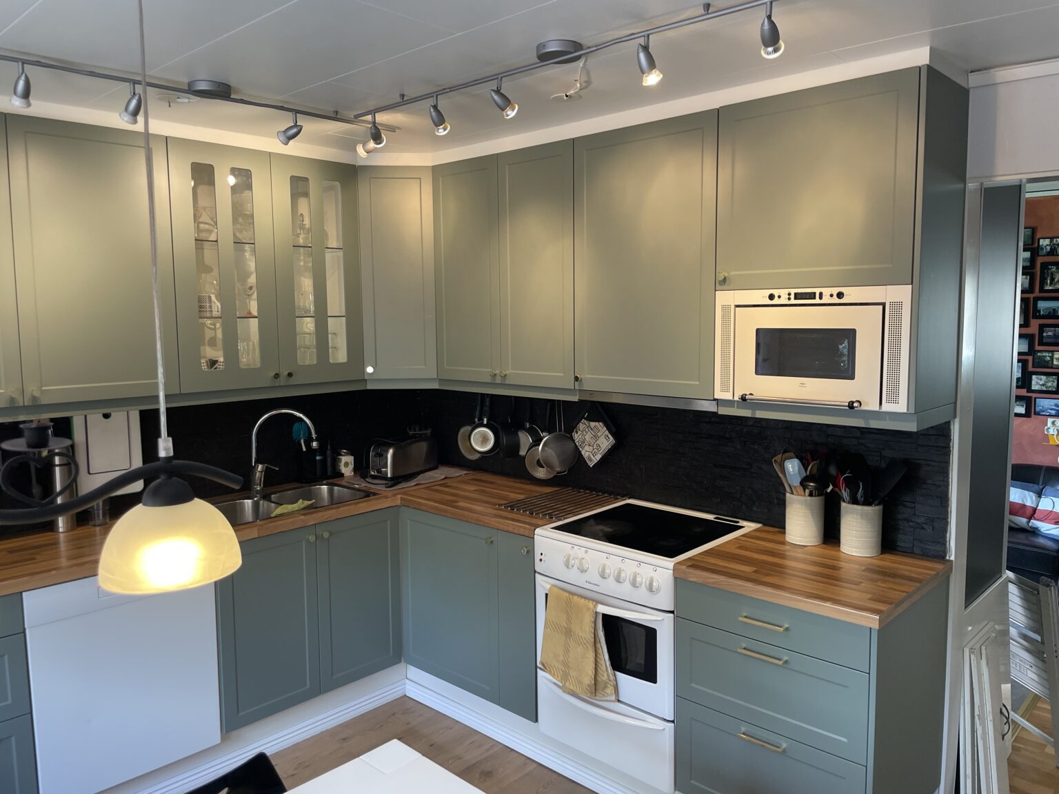 Upplev förvandlingen av detta kök i Enköping, där vår Smart Köksrenovering lyfte lägenhetens ursprungliga gråa kök till en kustgrön oas av stil. Vår värderade kund