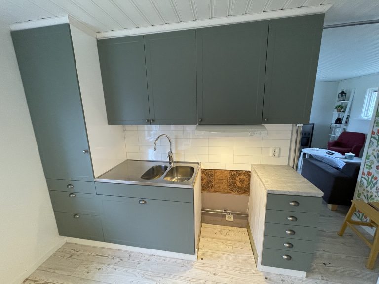 Denna kund utanför Eskilstuna ville ha ett nytt kök i sitt fritidshus. Då är smart köksrenovering ett perfekt alternativ eftersom du kan behålla stommarna och